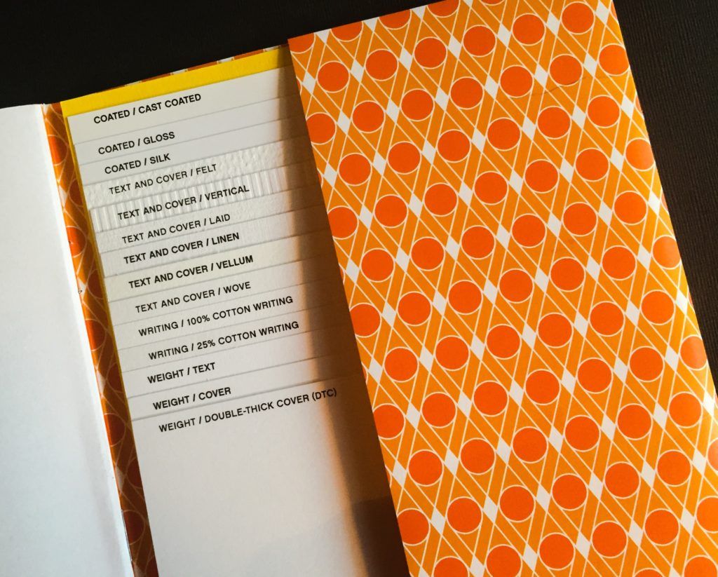 We get loads of awesome paper sample books from various vendors, courtesy of our favorite paper rep and paper doll, Zarie Lorow, from Mac Papers [she’s the best!]. We’ve got metal baskets filled with Mohawk, Neenah, Mac, French, the list goes on. Paper books are an awesome resource not only for paper selections when we have print projects, but also design inspiration.